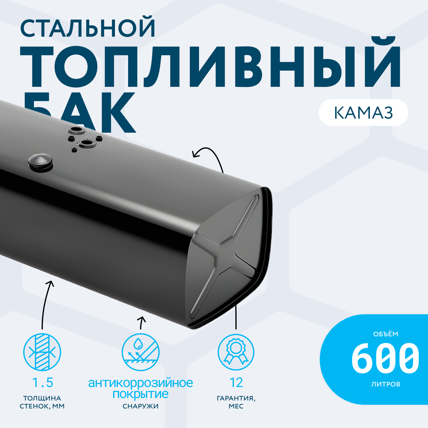 Топливный бак производства Бакор (аналог оригинального бака 53215-1101010-22 для а/м КамАЗ).