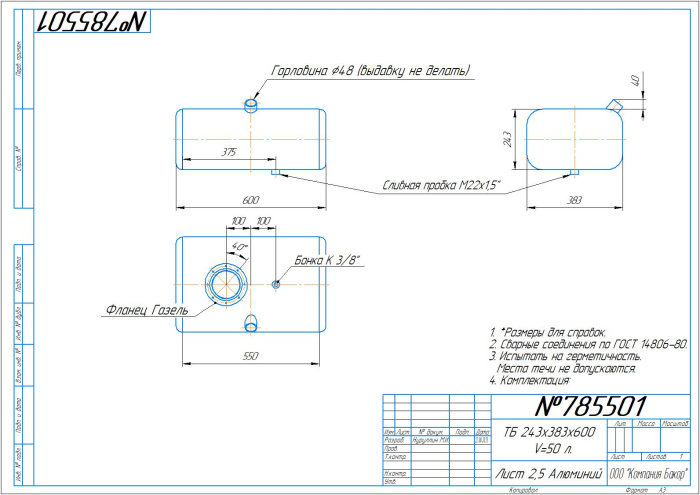 Данный топливный бак проходит по категории «Спецпредложения» и имеет определенные особенности. Подробности вы можете узнать связавшись с нашим менеджером.